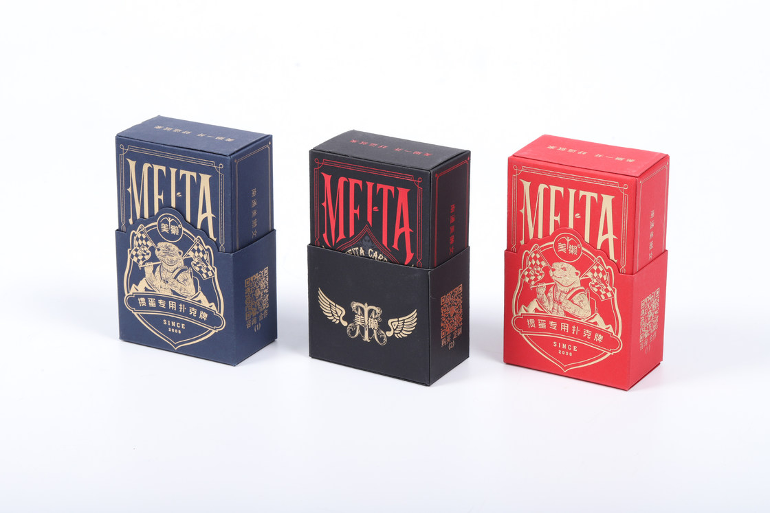 กล่องของขวัญไพ่เล่นถูกบรรจุในกล่องกระดาษแข็งแรง เพื่อป้องกันมันจากความเสียหายระหว่างการขนส่งจากนั้นกล่องจะห่อในผนังกระบอกเพื่อให้มีความผูกพันเพิ่มเติมและป้องกันการขีดข่วน.