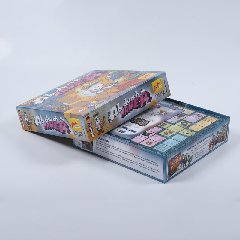 การ เล่น เกม บอร์ด ทุก รายการ ถูก ผูก ใน พลาสติก ป้องกัน และ วาง ใน กล่อง กระดาษ ที่ ทนทาน. กล่อง นั้น จาก นั้น ถูก ปิด และ มี หมาย ถึง ชื่อ ของ เกม และ เนื้อหา ของ เกม เพื่อ การ ระบุ ได้ อย่าง ง่ายดาย.